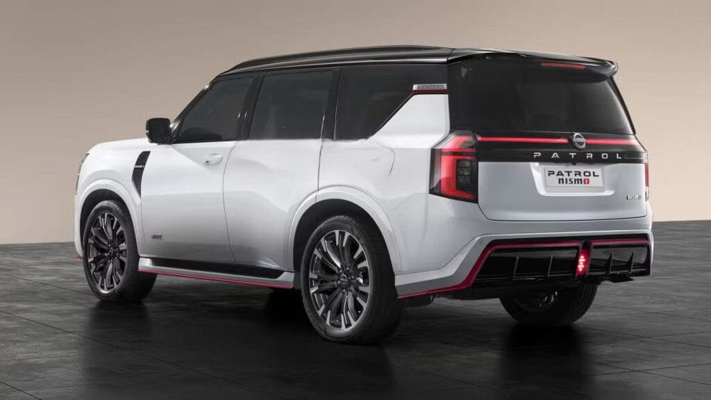 عجلات رياضية جديدة، يُحتمل أن تكون بحجم 22 إنش من نوع Forged، وصدام خلفي مع ناشر هواء أسود لامع ومخارج عادم مزدوجة مدمجة تعكس الطابع الرياضي للسيارة. تُضفي هذه العناصر مجتمعة مظهرًا عضليًا وديناميكيًا، يتماشى مع فلسفة نيسمو في الأداء العالي.